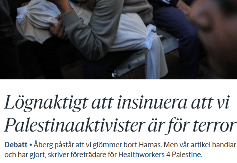 Debattartikel i Aftonbladet 250929. 301 hälsoarbetare kritiserar regeringens Gazapolitik